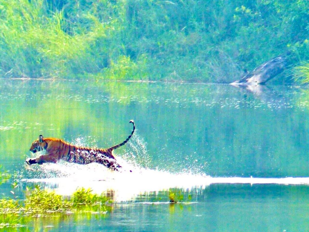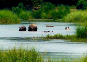 The third day of this 4 night 5 days Bardia Jungle Safari tour is dedicated to fun/adventure activities. You spend this day with water. After having your breakfast in the hotel, our representatives lead you to the Karnali Bridge. From there, you get into the water for a canoe ride, one of the best things to do throughout this tour.